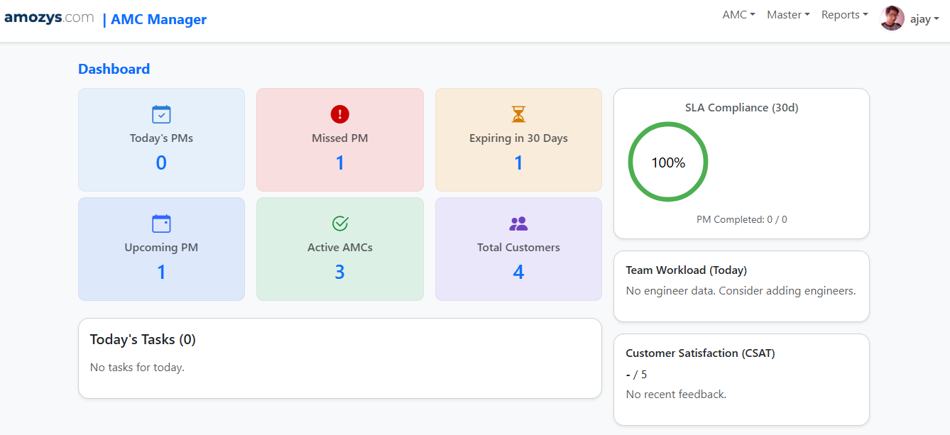 "Amozys has fully streamlined our AMC workflow. Our engineers and admin team saved countless hours every week."